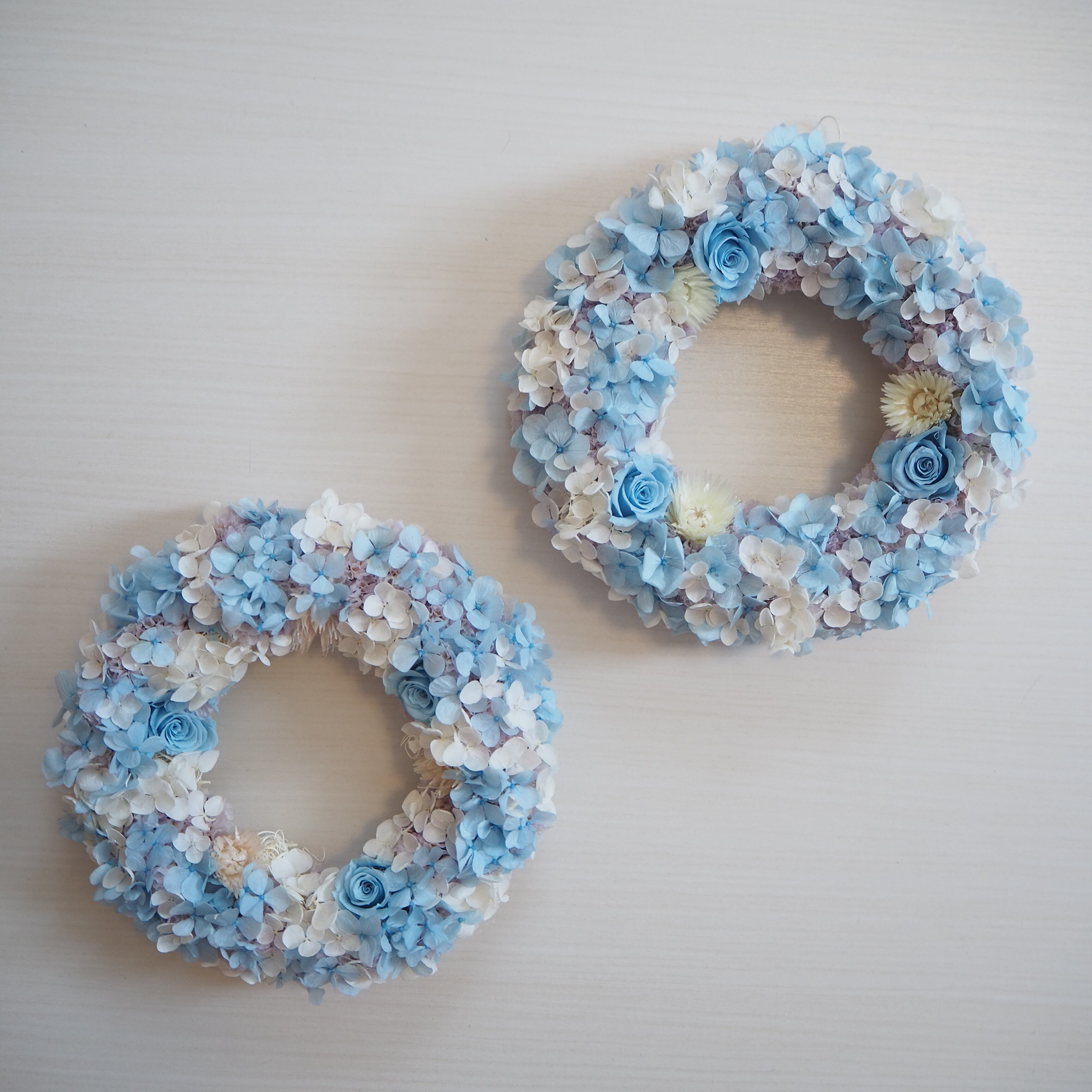 紫陽花とブルーローズのリース(サマーインテリア サマーギフト 夏のプレゼント)
